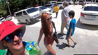 Ziplining with big rump Thai amateur GF