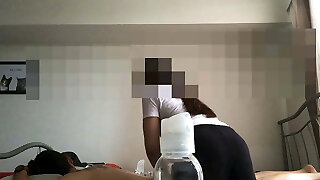 The masseuse who is a friend of my gf gets horny and gives me a hand-job and a blowjob