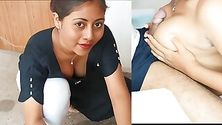 Sexy Slim Big-titted Asian Maid Pleases Her Boss's Dick With Her Hands & Pussy To Earn a Creampie