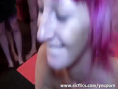 Sexy Brunette Loves Taking Giant Dicks in Her Horny Pussies and Swallows Cum Gangbang