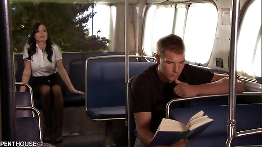 Horny vivid brunette couldnt resist and approached a handsome guy in the public transport