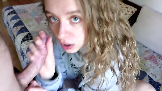 Sandy-haired smallish teen gets ravaged by her huge weenie beau.