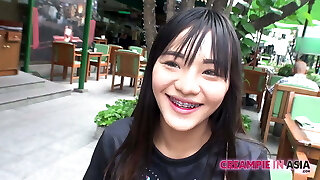 Skinny torrid Thai babe gets creampie