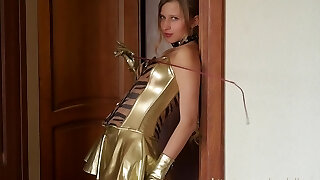 chiński miód dokucza i rozbiera się, aby rozbić jej napięty tyłek na kamery!