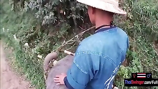 Elephant Railing In Thailand With Horny Teen Couple